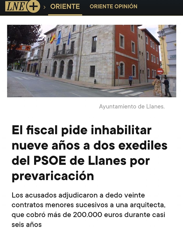 Contrataciones y nombramientos a dedo. Por este motivo varios exconcejales del PSOE de Llanes ya fueron condenados a un total de 81 años de inhabilitación.